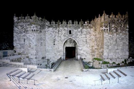 Photos: Old City; Jerusalem at night; Damascus Gate; © Sean Quigley 2006
